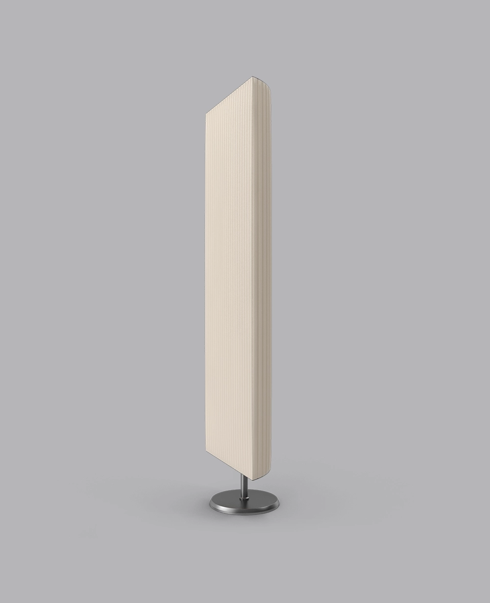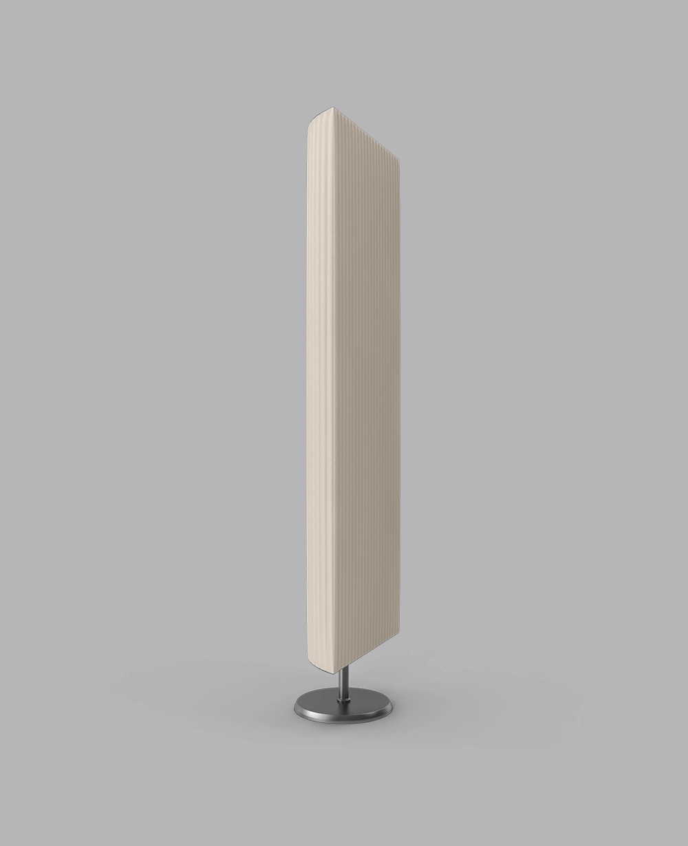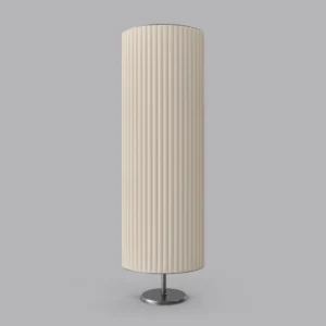 The Aura Lamp features a tall, cylindrical design with a textured shade, offering soft, diffused lighting that adds elegance and warmth to any room.