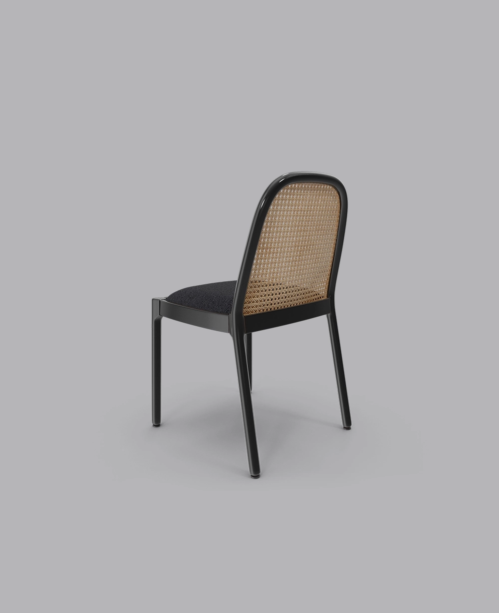 The Cane Chair is a perfect fusion of natural elements and modern design. Featuring a woven cane backrest combined with a sturdy black frame, this chair brings a touch of elegance and comfort to dining rooms or offices. The plush, padded seat ensures maximum comfort, while the sleek design complements any contemporary interior. This chair is ideal for those who seek both aesthetic appeal and functional seating in their spaces.